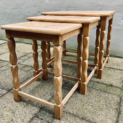 1960’er 3 indskudsborde massiv egetræ Dansk møbelsnedker