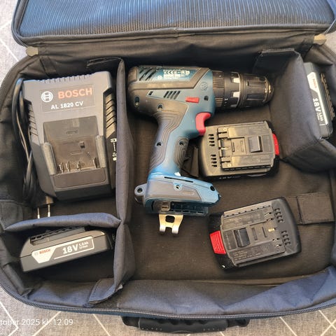 Bosch Professional GSR 18 V-EC boremaskine med tilbehør sælges. Der medfølger et batteri (1.3Ah) , oplader og værktøjstaske. Alt fungerer som det skal.