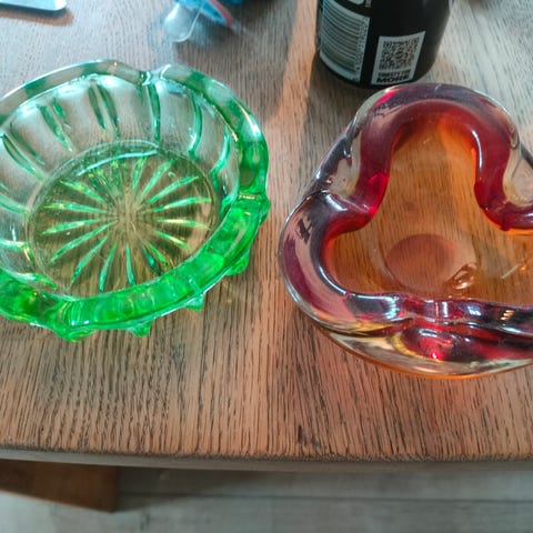 Forskelligt i glas, skåle, vase og stort retro askebæger