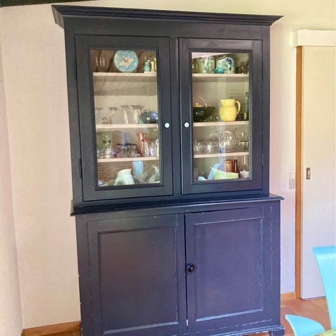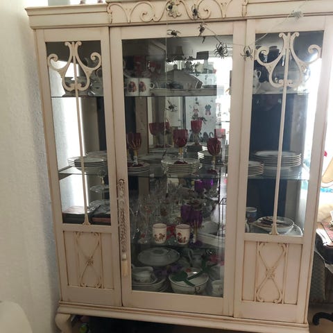 Antik Vitrineskab med Glaslåger og Messingbeslag
