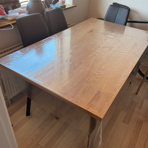 Jeg sælger dette spisebord med stole da jeg ikke længere får brug for det der er helt ny ekstra bordplader til de her aldrig været brugt du kan købe det for 500 kr.