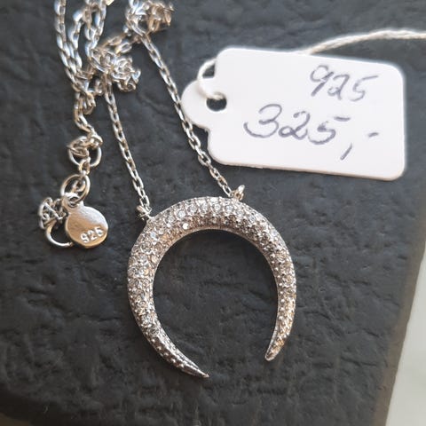 Smuk og feminin halskæde udført i Sterlingsølv med smukt blankt vedhæng prydet med smukke cubic zirkoner.