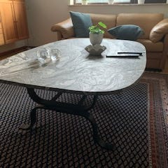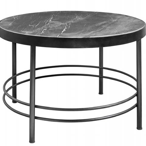 Sælger vores flotte runde sofabord i marmor-look med messing stel.