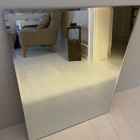 Super fint spejl fra Ide møbler - kan måde stå på gulvet eller hænges op i den medfølgende wire.