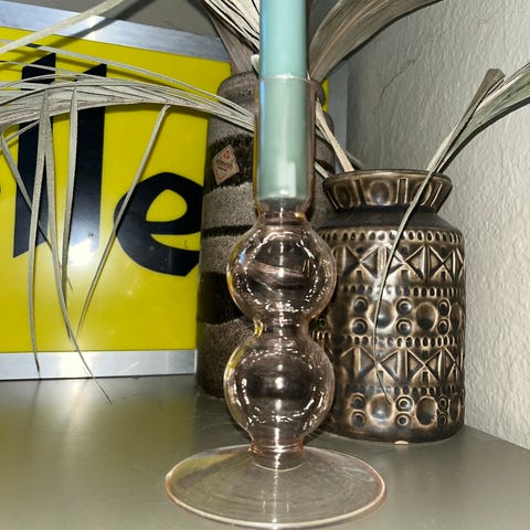 Smuk lysestage i grønt glas fra Louise Roe. 8x8 cm i bredden, 7,5 cm høj. Helt ny, aldrig brugt. Se også matchende glasvase i mine andre annoncer.