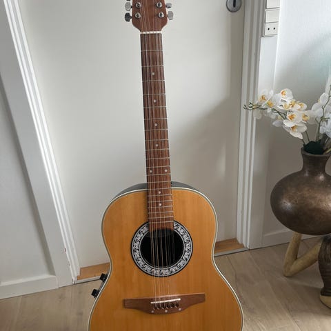 12 strenget western guitar med pickup. Sælges uden taske. Skal have nye strenge og har et lille hak bag på halsen. Kan ses på billede 4. Skal hentes i Gadstrup.