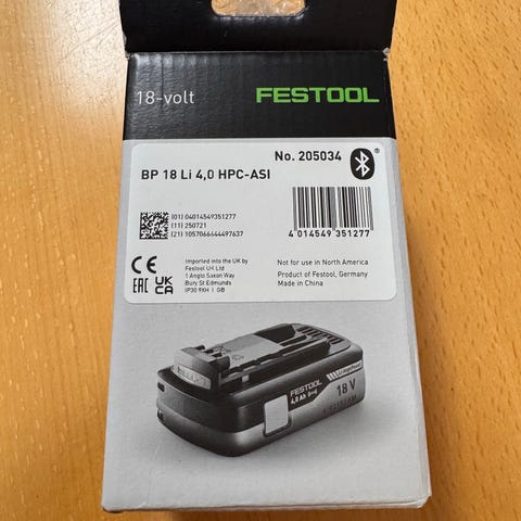 Festool T 18+3 Akku-boremaskine sæt med tilbehør i opbevaringskasse. Sættet indeholder en trådløs bore-/skruemaskine, batteri, oplader og forskellige bor. Designet til brug i forskellige bore- og skruerapplikationer.
