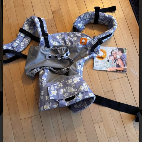 Tula Bæresele i grå farve. Designet til at bære børn komfortabelt med justerbare stropper og polstrede skulderremme. Fremstillet i holdbart materiale, egnet til daglig brug.