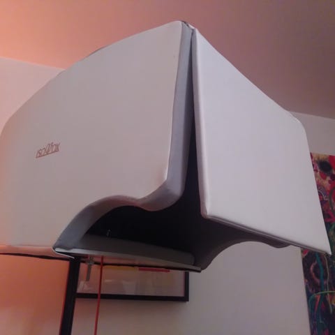 Øveboks til musikere fra Vicoustics - med vindue i dør og side. Der medfølger 4 VicPattern Ultra Wavewood Black Mat som fungere som fungere som en lydabsorbere. Boksen dæmper al lyd med ca 30 dB. Kan bruges både som øveboks for musikere, telefonboks hvis du mangler et sted du kan tale fortroligt eller til indtaling af lydbøger. Nypris 32600