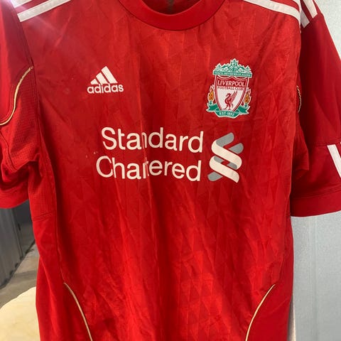 Liverpool rød hjemmebanetrøje, Warrior, str. Large, Velholdt Liverpool hjemmebane trøje fra 2013. Året hvor Liverpool blev nummer 2 i Premier League og dengang Agger spillede på holdet. Trøjen er købt på Anfield Liverpools hjemmebane.