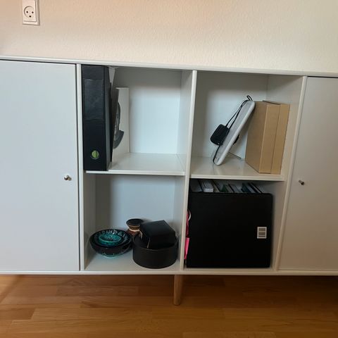 Ilva skænk i massivt træ malet hvid på ydersiden med tre skuffer og tre skabe så den er tung. Skænken har en klassisk stil og har massere af opbevaringsplads til forskellige genstande. Den er velegnet til brug i stue eller spisestue vi har brugt den til vores tv. Den kunne måske godt bruge en ny omgang maling da den har lidt småskrammer i malingen hist og her og nye greb ville måske pynte? deraf også prisen.