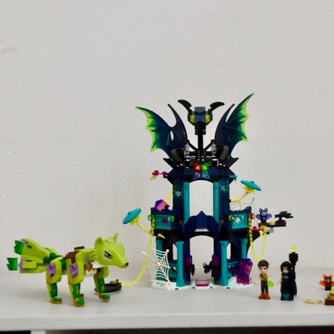 Sættet indeholder løve, figurer, flagermusfangstkøretøj m. kædestang og katapult samt en lille flagermusgrotte med spindelvævsdør og 2 flagermussenge.