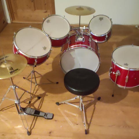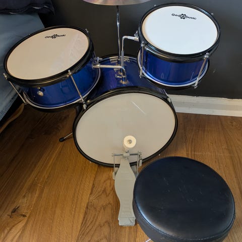 Gear4music junior trommesæt i sort med skammel og trommestikker. Samlet og brugt ganske lidt. Købt August 2025. Afhentes i Søborg.