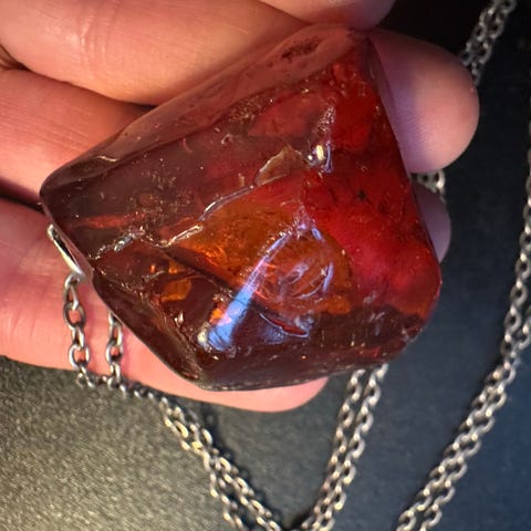 Rav fundet i Danmark. Sat på sølvkæde af guldsmed. Pris inkl sølvkæde.