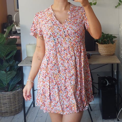 Lyserød blomstret kjole fra Only med lidt puffærmer Str medium