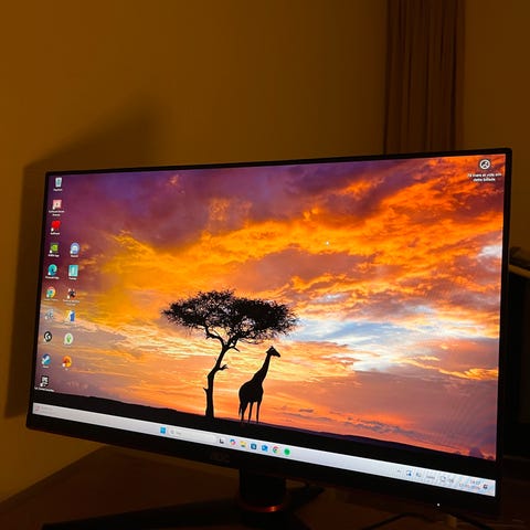 24” buet skærm med 144 Hz, som er rigtig god til gaming. Billedet er flydende og skarpt, og skærmen fungerer helt som den skal.