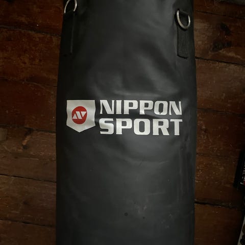 Boksesækken er ubrugt og inkluderer også handsker, sjippetov og wrap fra Nippon Sport.