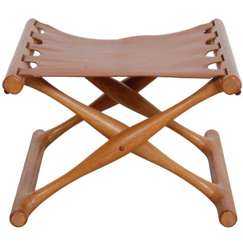 Poul Hundevad skammel i teak med det originale naturlæder. Højde: 40 cm. Flot stand.