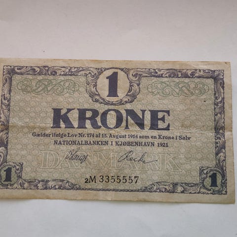 Danmark. 1 krone seddel, 1921 2 O