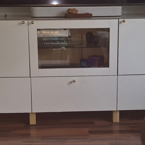 Ikea BESTÅ tv-skænk med frosted glas-låger og indbygget lys.