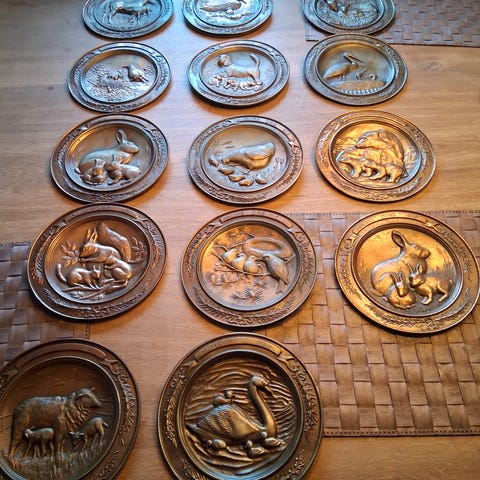 Banket og foldet af massivt kobber. Diameter 20 cm.