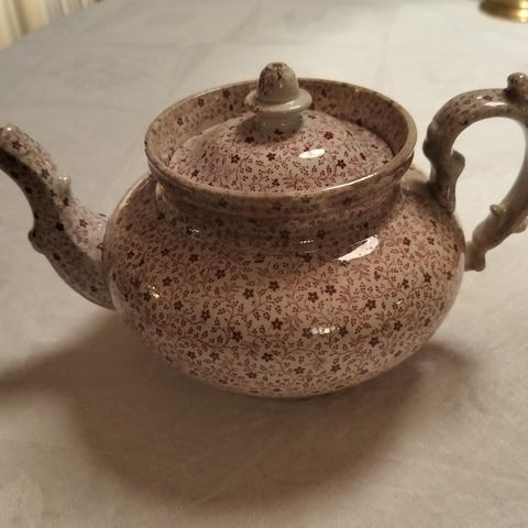 Charmerende tepotte i mat mørk ler og blank indeni.