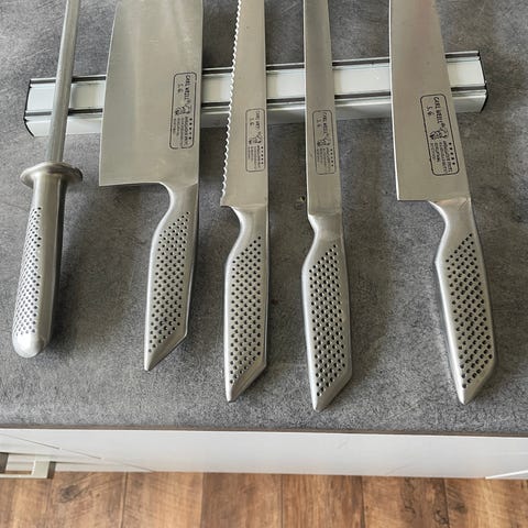 Helt nyt sæt af knive samt knivholder af mærket House of Chefs. Aldrig brugt. Oprindelig pris: 1000kr — Salgspris: 750kr