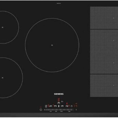 Siemens induktionskogeplade med glaskeramisk overflade. Kogepladen er designet til effektiv og præcis madlavning ved hjælp af induktionsteknologi.