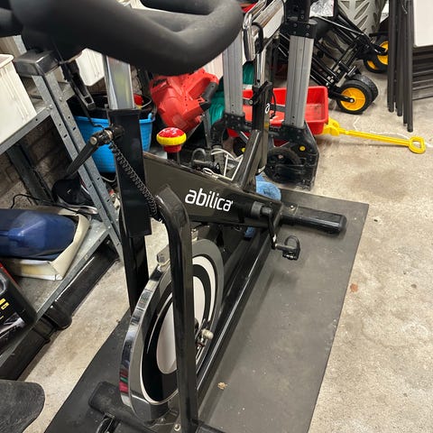 Abilica motionscykel med digitalt display til visning af træningsdata og flere træningsprogrammer. Justerbart sæde for tilpasset komfort under træning. Velegnet til hjemmetræning.