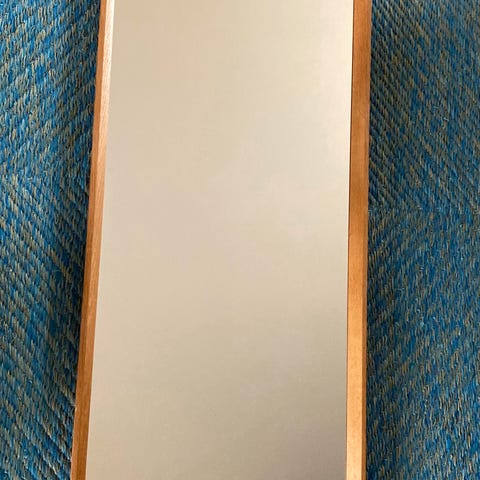 Vintage spejl på mørk malet træramme. Passer til vægmontering.
