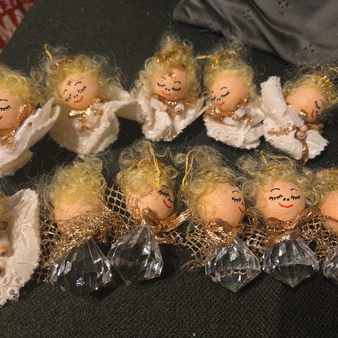 14 helt nye julekugler med englemotiver. Stadig med prismærker.