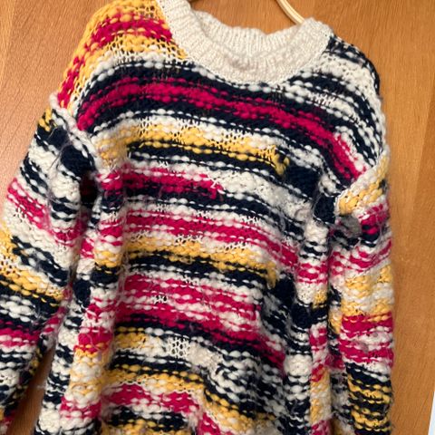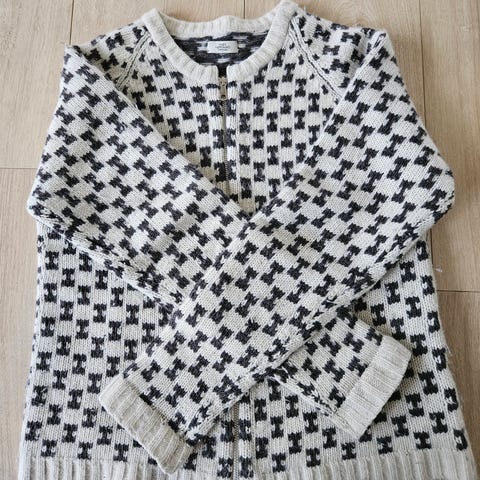 Skøn klassisk trøje bluse sweater fra Mads Nørgaard med lynlås ned foran. Ser ny og ubrugt ud (brugt 1 gang) 100% ren ny uld, er let taljeret. fra 2009.