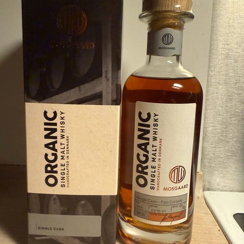 Her udbydes en dansk økologisk single malt whisky fra Mosgaard Whisky – et destilleri, der har gjort sig bemærket for sit kompromisløse håndværk og fokus på økologi, lokale råvarer og karakterfuld fadlagring.
