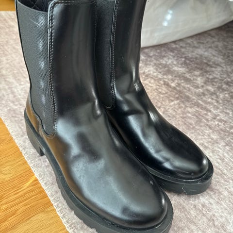 Elastik i sider og i lak look, sål udvendig måler 27,5cm.