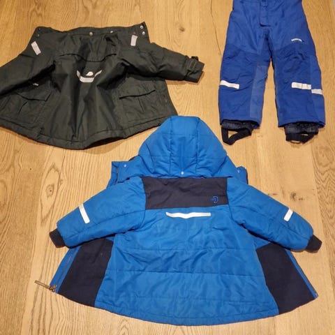 Mærkerne er didriksons, engel, bane it og celavi. Det hele sælges helst samlet for 300 kr..