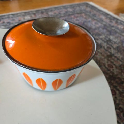 Lotus-kasserolle, Cathrineholm, Lotus-kasserolle uden låg. Dekorativ og retro (fra 1962)