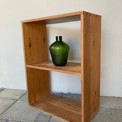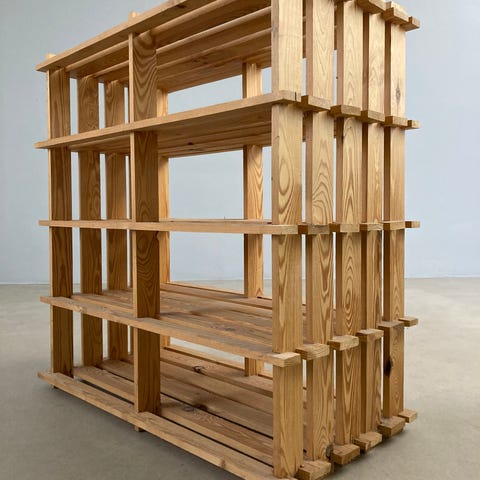 1970’er Fyrretræs reol til fra Denka møbler, Herning. Dansk design og møbelsnedkeri. Fra røgfrit hjem.