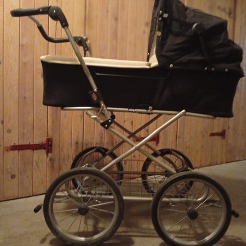 Odder barnevogn i grå farve. Designet til at give komfort og praktisk anvendelse ved transport af børn. Fremstillet med materialer der sikrer holdbarhed og funktionalitet.