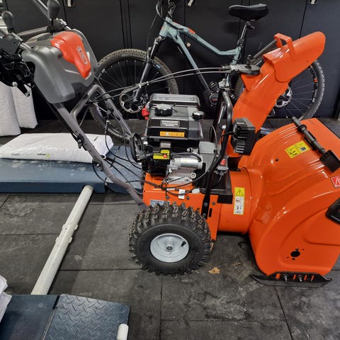 67cm bred 60 cm sne dybde. 6 gear frem og 2 bak gear. Spær på akslen med håndtag. 8hk benzin motor. Starter og kører perfekt. Selv lyset virker.