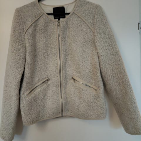 Yndig jakke til selskab ikke for varm. Brugt få gange, passer den desværre ikke mere. Ryglængde 60 cm.