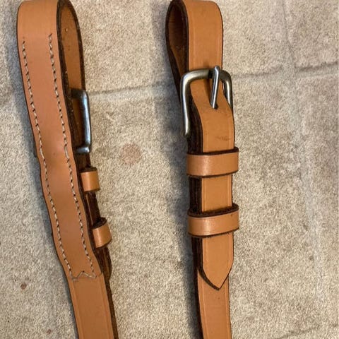 3 stk gode brugte sorte læderskagler 2stk 3,5cmx200cm 1 stk 3,5 cmx215cm 2 stk nye sorte læderskagler 4,5cmx210 cm 2 stk gode brugte sorte kobbelremme str cob/full 2 stk rygskåner med rød filt og hvid læder samt stof bagline Rygstykke- jern samt spænder og emblemer priser fra kr 50