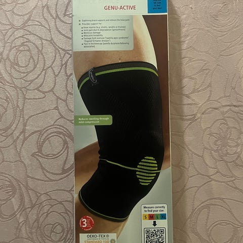 Den lille og lette bandage er lavet af åndbart Breath-O-Prene materiale. Anbefales til smerter i knæskallen og uspecifikke forreste knæsmerter