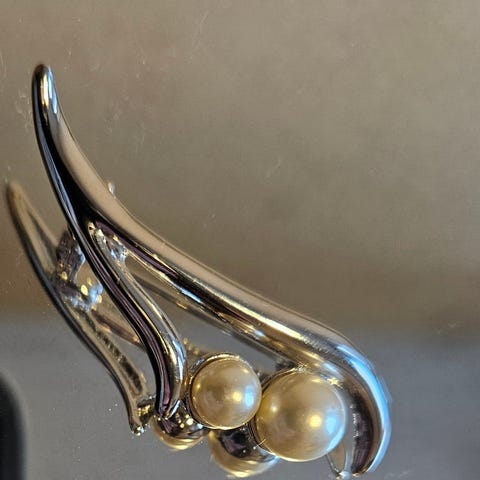 Fin Broche i guld farvet med 2 stk hvide perler