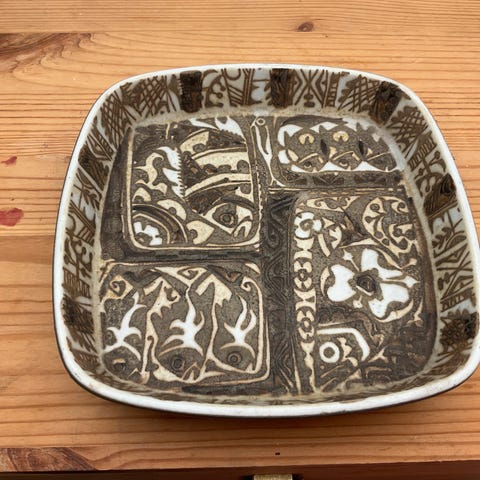 Den måler 11 x 11 cm og 2,5 cm i højden. Formnummer 780/2882.