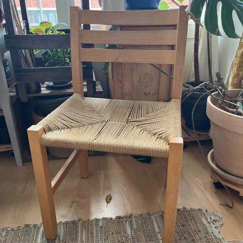1 spisestol / køkkenstol i bøgetræ med flet på sæde