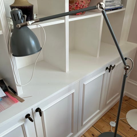 Hvid gulvlampe med justerbar skærm – læse- og arbejdslampe
