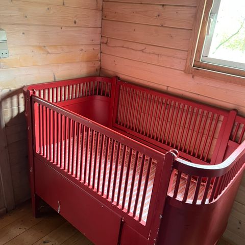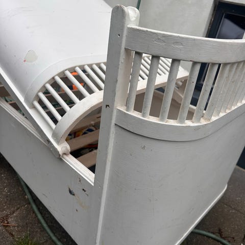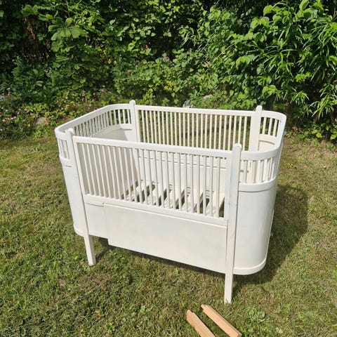 Juno seng komplet med sider. Afslibning påbegyndt - skal færdigslibes og males.