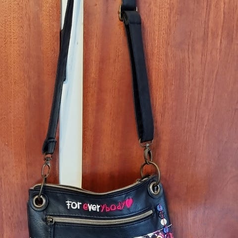 Helt ny Desigual læder taske til kvinder med justerbar rem i sort og hvid. Tasken har flere rum med lynlås og metaldetaljer. Designet til daglig brug og opbevaring af personlige ejendele.