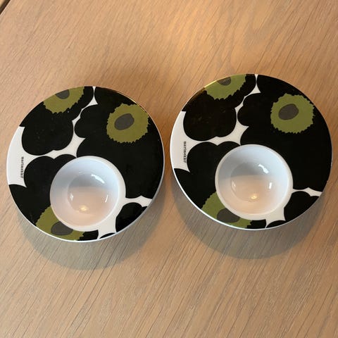 To smukke æggevarmere fra halvfjerdserne. Passer fint til Marimekko.