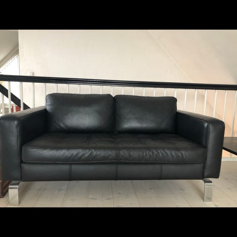 Det er en sort ledersofa